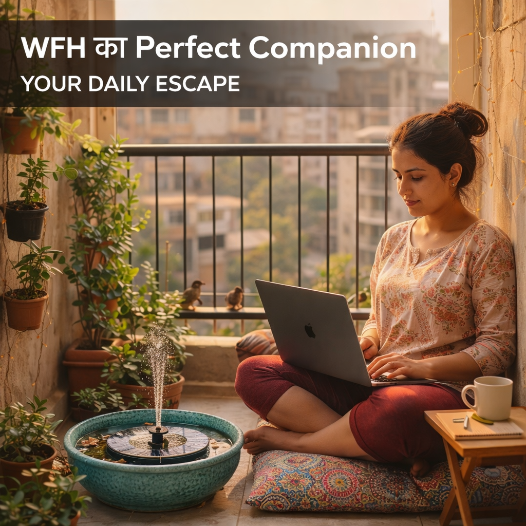 The floating solar fountain that keeps water crystal-clear, attracts 10+ birds daily, and costs ₹0 on electricity. Works in any bird bath, pond, or planter — no tools required.