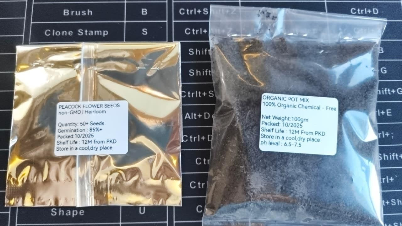 Ghar ki balcony ho ya chota sa terrace garden — ye Peacock Flower Seeds aapke space ko bana denge super attractive! Easy to grow, beginners bhi bina dikkat ke ugha sakte hain 😍